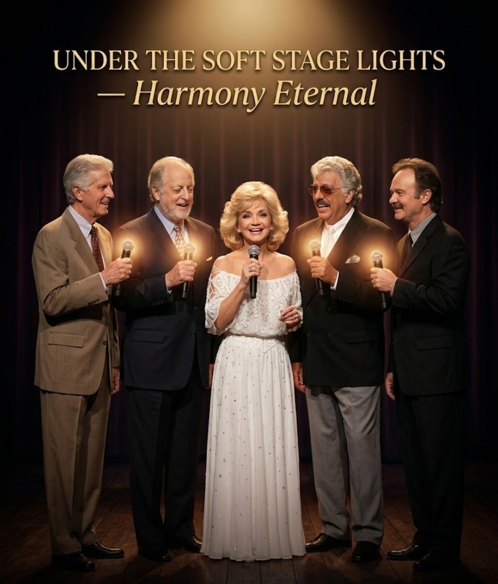 Under the soft radiance of stage lights, an unforgettable moment unfolded—one that seemed suspended in time, wrapped in warmth, reverence, and the quiet power of shared history. Standing gracefully at center stage was Barbara Mandrell, her presence both elegant and deeply grounded. Beside her stood the members of The Statler Brothers, their shoulders nearly touching, their expressions reflective yet filled with purpose. What followed was more than a musical performance; it was a gathering of voices bound by faith, loyalty, and decades of unwavering dedication to their craft.