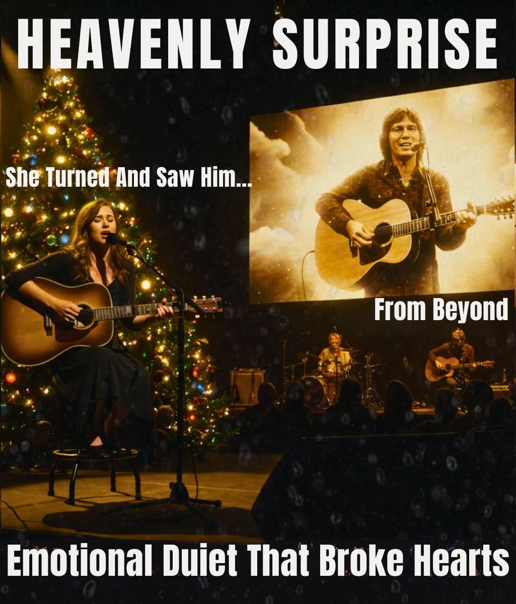 Without warning, a familiar voice joined hers — gentle, unmistakable, and achingly alive. At the same instant, the screen lit up with the image of John Denver, singing as he once did, calm and luminous, as if time itself had stepped aside.