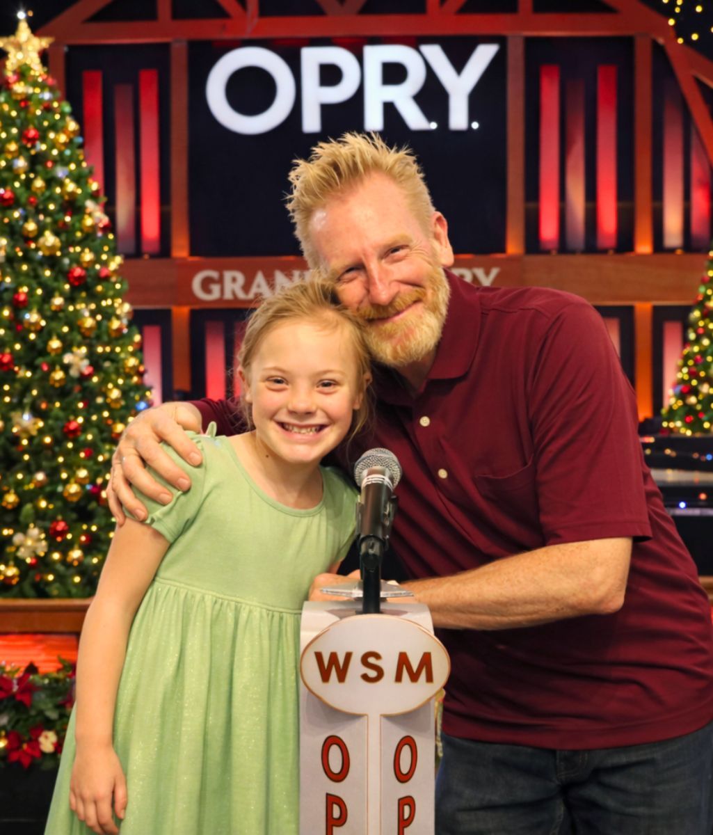 At the center of the famous Opry circle stood Rory Feek, visibly devastated yet resolute, with his brave young daughter Indiana Feek at his side. Together, they offered a final Christmas duet for Joey Feek—wife, mother, partner, and a presence that felt unmistakably close in that moment.