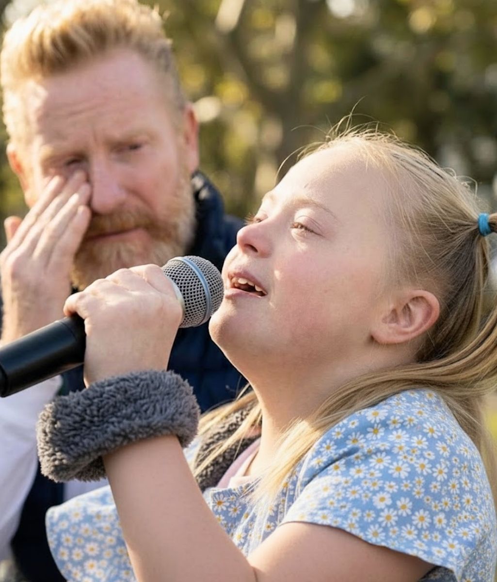 Rory stood a step back, attentive and steady, letting the moment belong to his daughter. He did not guide her tempo or shape her phrasing. He trusted the song to find its way. Indiana sang without urgency, each line clear and unguarded, as though the meaning of the words had already taken root long before the first note was sung.